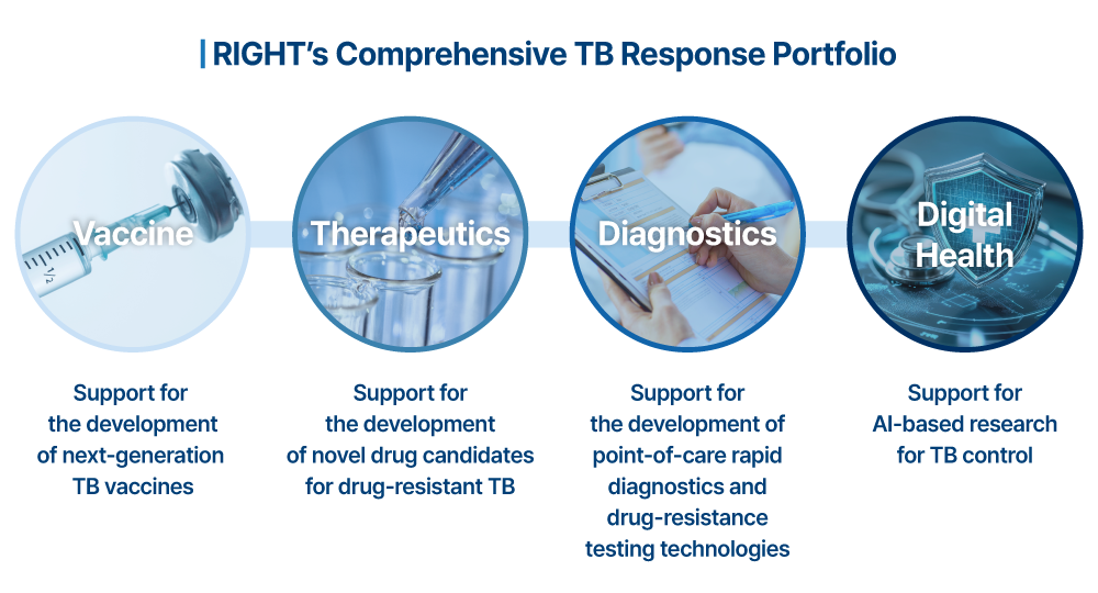 In response to these challenges, the RIGHT Foundation has developed a comprehensive support portfolio spanning the full continuum of TB response—from prevention and diagnosis to treatment—and continues its efforts to end TB. RIGHT has consistently supported projects that address urgent unmet needs in global health, including R&D for digital systems designed for use in low-resource settings, as well as initiatives focused on MDR-TB.